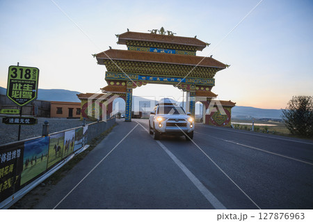 Toyota 4runner on high altitude city Litang,China(words mean western gate, world's highest altitude city Litang )