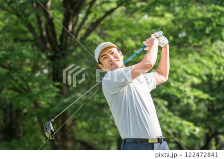 男高爾夫球手擊球(隨揮、擊球瞬間)