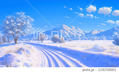 冬季土路景觀,卡通風格