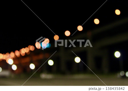 黑暗中漂浮的光粒子和夜間路邊的景色