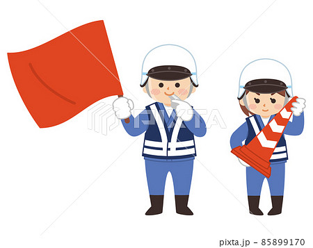 一名男保全人員指揮交通的插圖(手持指揮棒和頭盔)