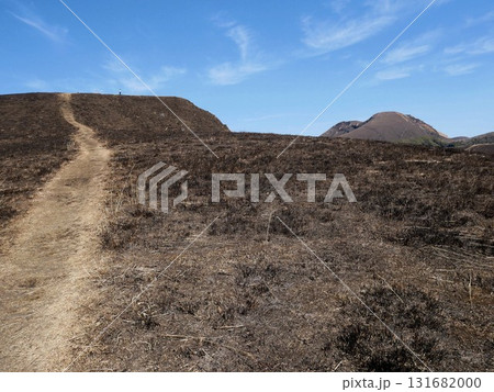 草千里濱、通往駒立山的道路、焚田後的風景(熊本縣阿蘇山)