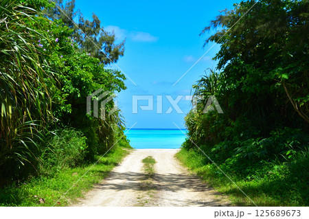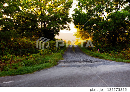 在陽光明媚的日子裡,鵝卵石路在樹梢間透射出光芒