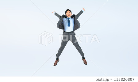 跳躍的男性商務人士的全身照片