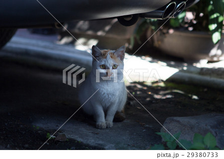 蹲坐的虎斑貓咪 野良貓 screet cat