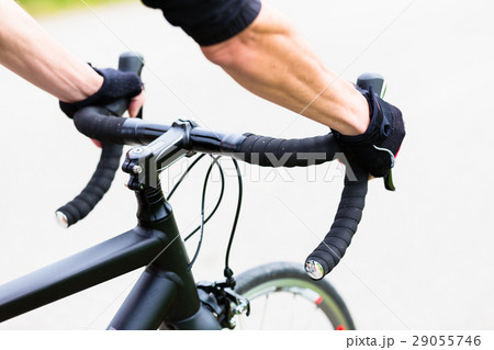 Sport man having Hands on handlebar of racing bike