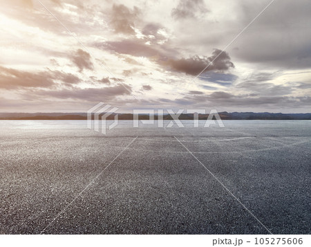 柏油路日本天空和雲彩在陽光下,遠山背景,高角度視圖