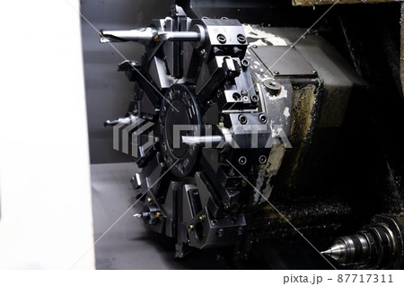 一家鎮工廠的圖像有一台減速火箭的車床的
