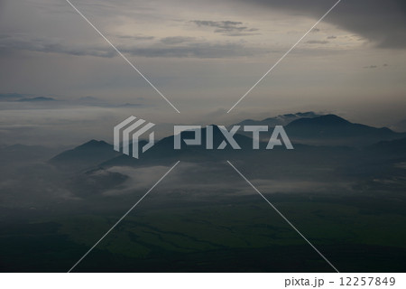 從熊本縣美里鎮上方到自衛隊大原實踐區景觀阿蘇山阿蘇山和山。