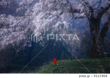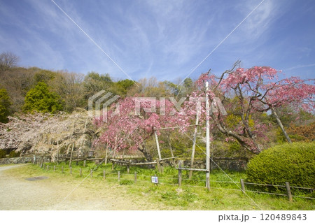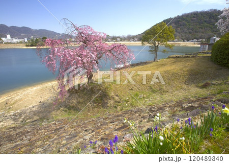 北山水庫的雙紅垂枝櫻花和新綠的高山/六甲山山麓/兵庫縣西宮市