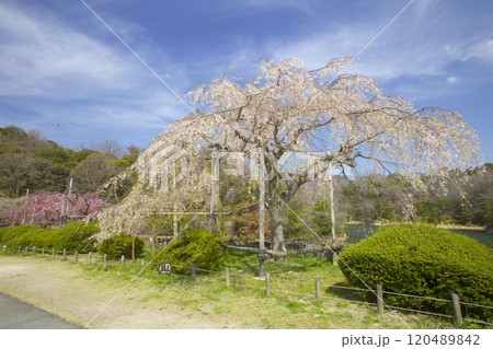 北山水庫的紅白櫻花(重瓣紅垂枝櫻、線櫻)/兵庫縣西宮市