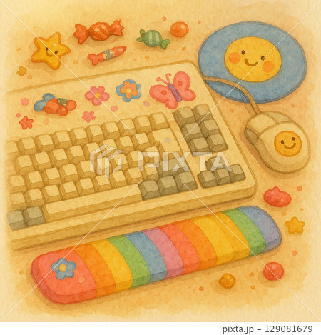 可愛兒童風格鍵盤鼠標圖|七彩彩虹護臂與笑臉圖案醫用療癒電箱口罩