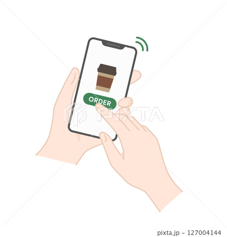 透過智慧型手機訂購咖啡的圖示/插圖(行動訂購)