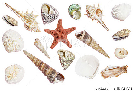 various and colorful seashell isolated on white background