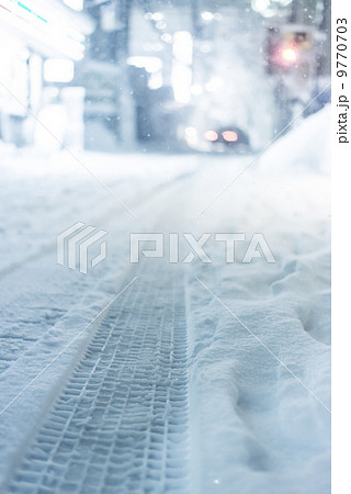 冬天的早晨輪胎痕跡