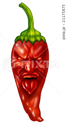 Hand-drawn illustration of a whole red chili pepper accompanied by slices