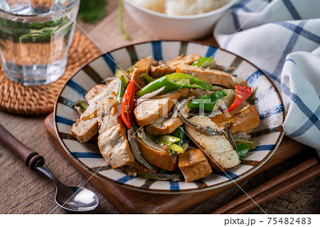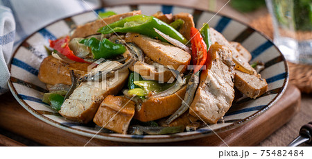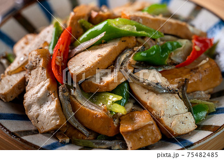 豆干 豆乾 豆腐 辣椒 青辣椒 小魚乾 Dried tofu and fish 干し豆腐
