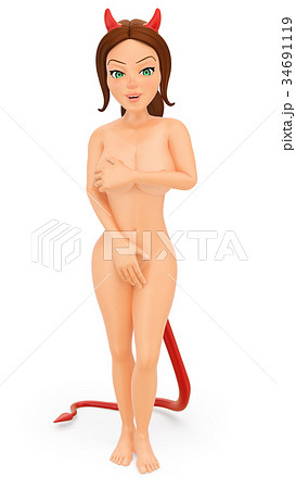 3D Naked woman with horns and demon tail