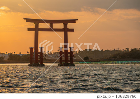濱松市(靜岡縣)日出前弁天島紅色鳥居的景色