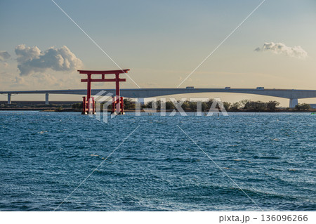 濱松市(靜岡縣)日出後弁天島紅色鳥居的景色