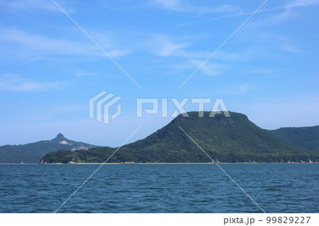 夏日午後,從高鬆開往小豆島的船上看到的香川縣四國八島