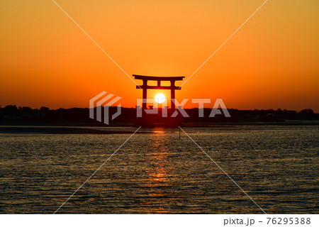 靜岡縣濱松市,天氣晴朗的濱名湖風景和標誌性的紅色鳥居