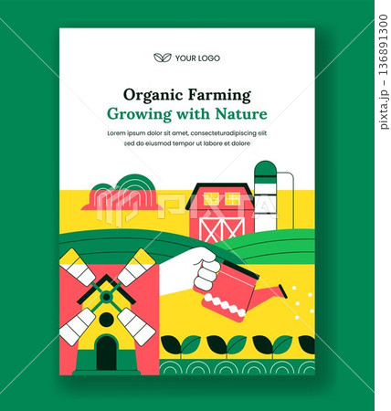 Vertical Poster Organic Farming Process Flat Hand Drawn Cartoon Design