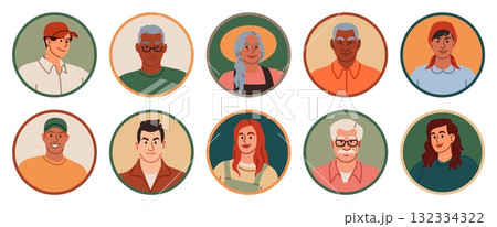 Farmer avatar. Gardener person doodle face, agricultural countryside worker, head in round form, old and young men and women in hat user profile. Vector cartoon flat style isolated account icons
