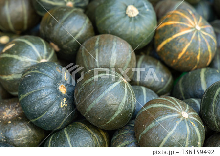 新鮮栗子南瓜堆放展示