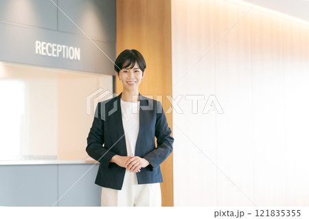 微笑著為顧客服務的住宿公司工作人員的形象插圖材料