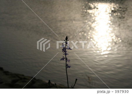 夏季田野花卉·Murasaki Turifune(Yurihune)和年輕種子的鮮豔花朵·橫向位置