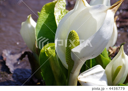 臭菘開花的尾瀨原和殘雪的慶鶴山