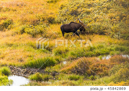 秋天阿拉斯加的麥金利地區風景的阿拉斯加秋天風景