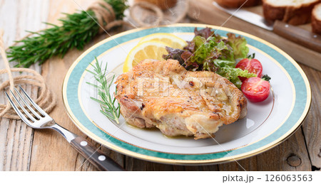 Watercolor grilled pork steak with herb rosemary and boiled potatoes isolated on white background. clip art element illustration