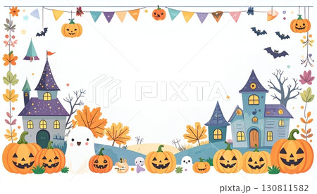 可愛的鬼屋、南瓜和鬼魂萬聖節框架