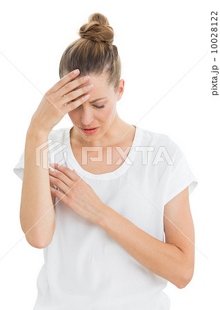Pretty blonde woman having ache