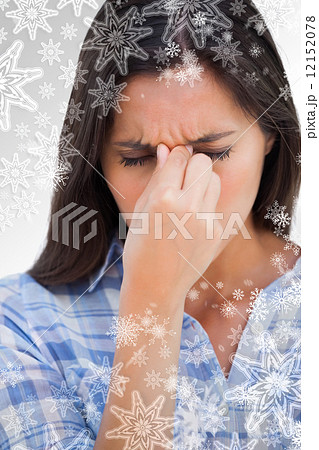 Composite image of pretty blonde getting a headache