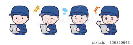一名男性「消防員」正在使用平板電腦