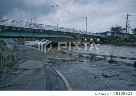 韓國的雨季使河水氾濫。非破壞,城市破壞,雨季,洪水