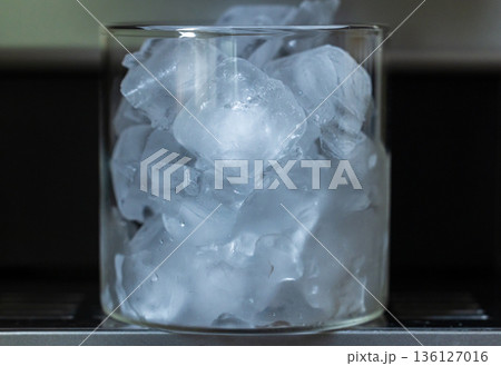 一袋冰塊隔離在白色背景中,卡通漫畫插圖向量