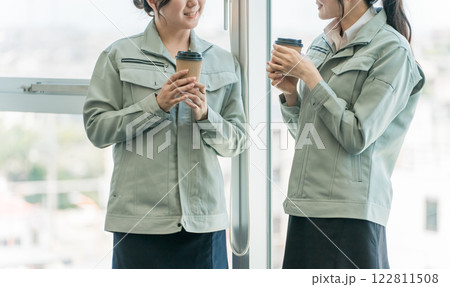 女工程師和工人在工廠或小型企業休息和交談