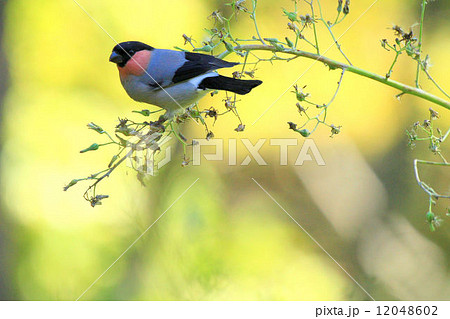 紅腹灰雀男性在最喜歡的樹枝上放鬆