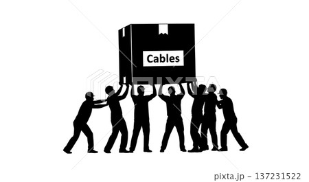 Black Solid Developer Box Cables Silhouettes Set of Six on White Background