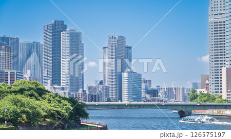 東京城市景觀隅田川和城市景觀隅田川露台越中島公園