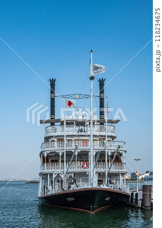 停泊在滋賀縣大津市大津港的觀光船(密西根號)