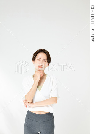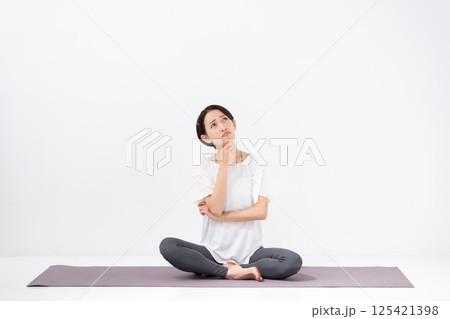 穿著瑜珈服的思考女人