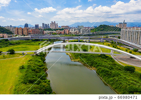 臺灣,新北市,公園,新店區,陽光運動公園,水,建築物,天,藍色,溪流,橋