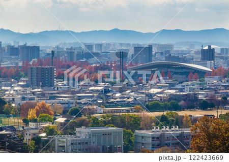 日本岡山縣岡山市縣立棒球場的美麗秋景