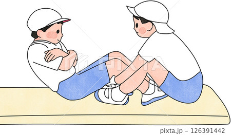 坐的體操衣服的兩名小學學生衣裳