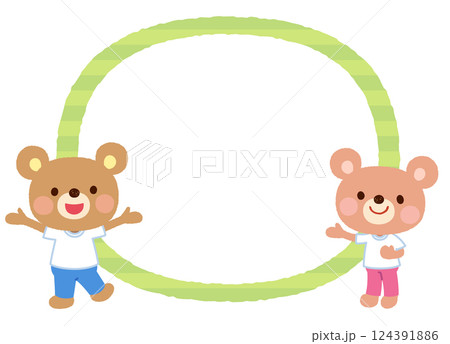 小學生和老師穿著圓圈的健身房制服